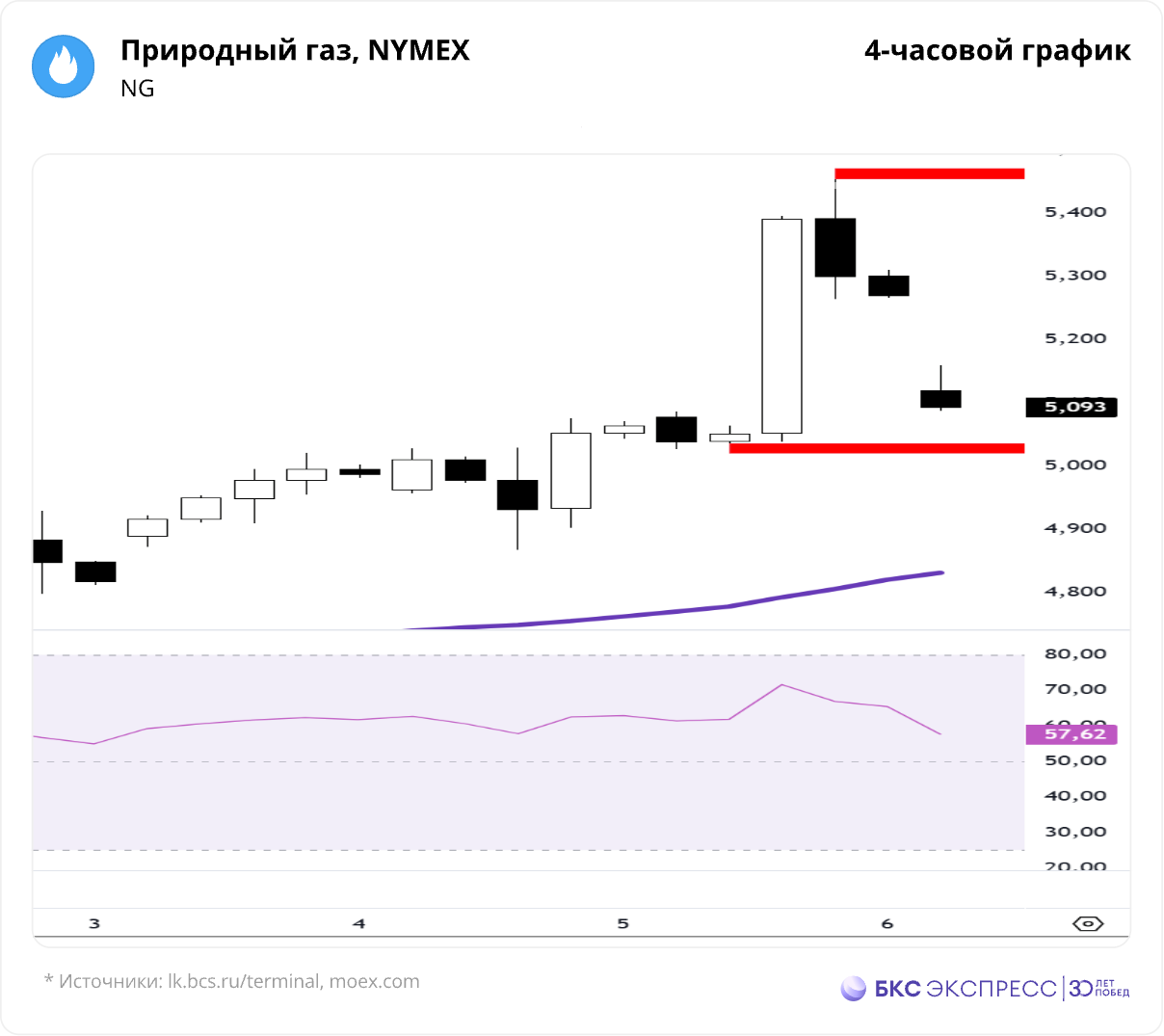 Фьючерсы на природный газ: в пятницу котировки перевыполнили цели роста 5,135–5,15. Текущий максимум — на отметке 5,496.
