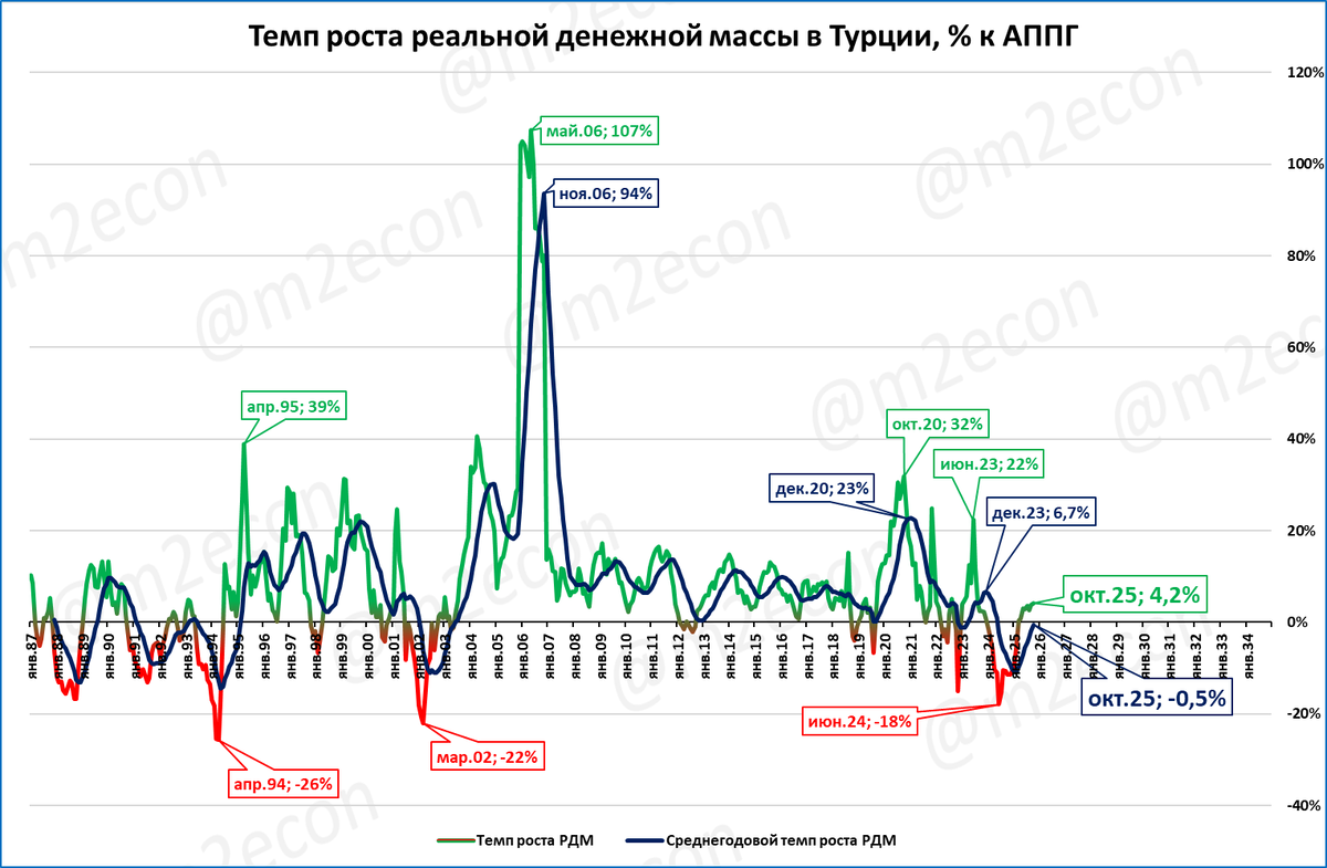 В октябре рост РДМ Турции составил 4,2% к октябрю 2024 года. ВВП в 3 квартале замедлился до 3,7% к 3 кварталу 2024 года.