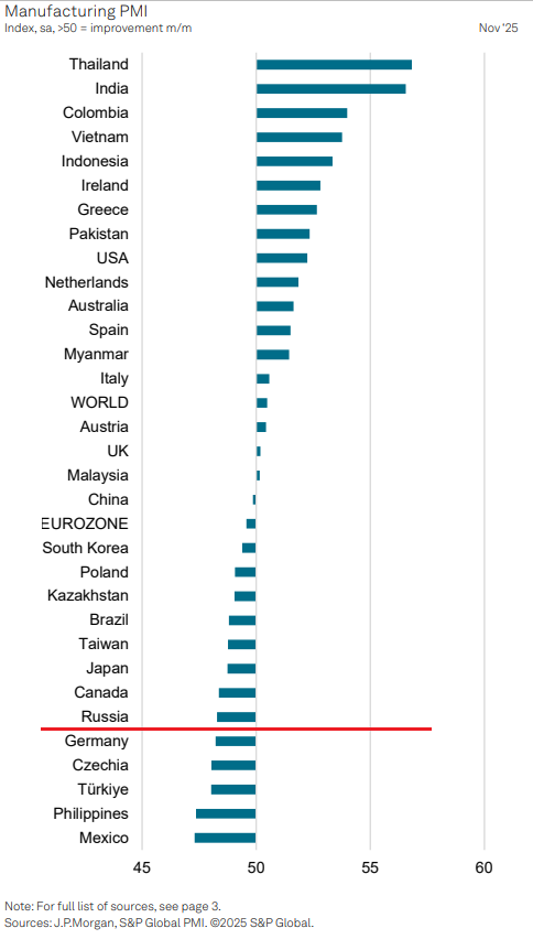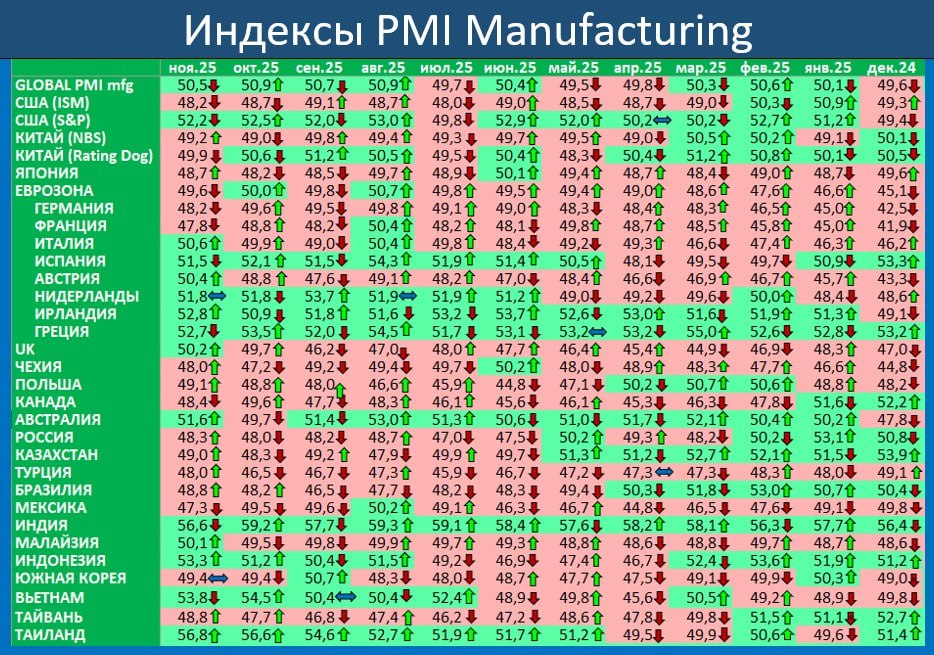 В ноябре индекс деловой активности в мировой обрабатывающей промышленности (PMI manufacturing) составил 50,5 пунктов по сравнению с 50,9 в октябре. Выше 50 пунктов = рост деловой активности.