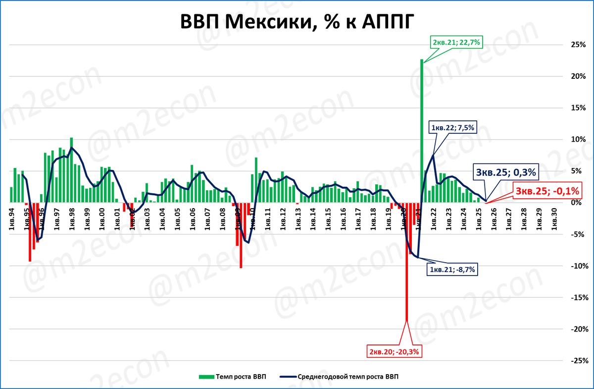Мексика: ВВП падает, РДМ растёт