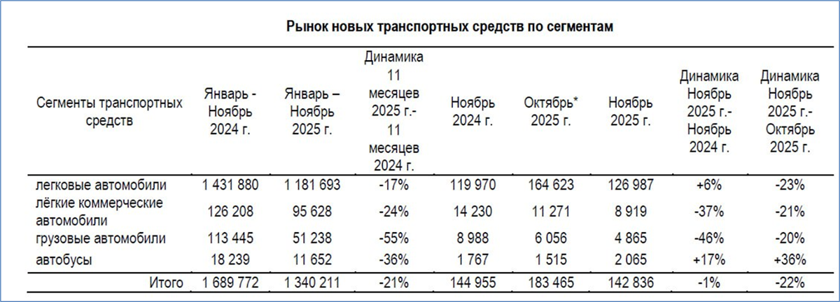 Легковые, грузовые, автобусы: итоги ноября