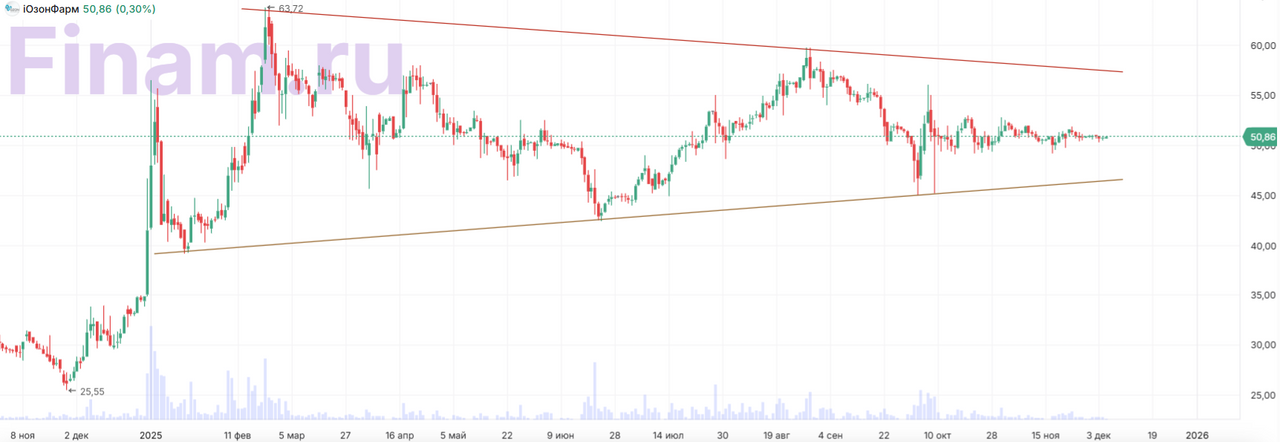 по объему продаж за 2024 год. С 2027 году компания планирует начать коммерциализацию биосимиляров (биологических аналогов оригинальных препаратов). Фокус внимания на развитии противораковых препаратов (аналогов) является ключевым драйвером роста для этой бумаги на обозримую перспективу. Рейтинг акций «Озон Фармацевтика» в нашем покрытии ― «Покупать», целевая цена ― 74 руб., апсайд ― 46%.