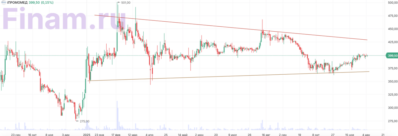 «Промомед» — российская биофармацевтическая компания, специализирующаяся на препаратах в таких областях медицины, как онкология, метаболические нарушения, аутоиммунные и инфекционные заболевания. Портфель «Промомед» состоит как из оригинальных препаратов, так и из дженериков. Фокус на метаболических заболеваниях, таких как ожирение и диабет, обеспечивает компании возможности значительного наращивания выручки и прибыли в долгосрочной перспективе. Рейтинг акций «Промомед» ― «Покупать», целевая цена ― 592 руб., апсайд ― 48%.