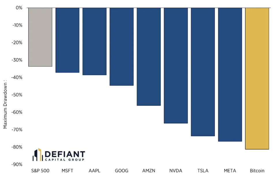 Однако заявленная долгосрочная доходность биткоина по сравнению с акциями семерки сопровождается чрезвычайной волатильностью, и по этому показателю BTC уступает многим активам перечисленных компаний, обратил внимание сооснователь Defiant Capital.
