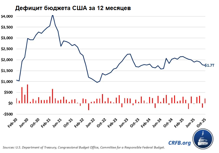 Согласно оценке Pantheon Macroeconomics, доходы США от новых тарифов по состоянию на 25 ноября оказались на $100 млрд ниже прогнозов Трампа. Предварительные данные указывают на то, что, вместо ожидаемых «полутриллиона и более», годовые поступления составили $400 млрд.