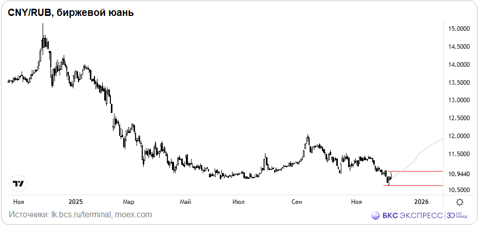 На фоне высоких ставок в экономике предложение валюты превышает спрос. При снижении стоимости фондирования компаниям станет полегче. Курсы инвалют в начале 2026 г. видятся гораздо выше — доллар на 85, евро к 100, юань до 12. В дальнейшем это сыграет за бумаги сырьевиков. А пока низкие курсы выглядят интересно для формирования направленной валютной позиции под перспективу.
