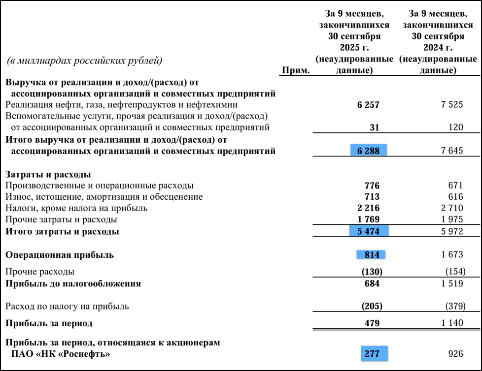 Роснефть опубликовала усеченные данные по МСФО за 9М 2025: