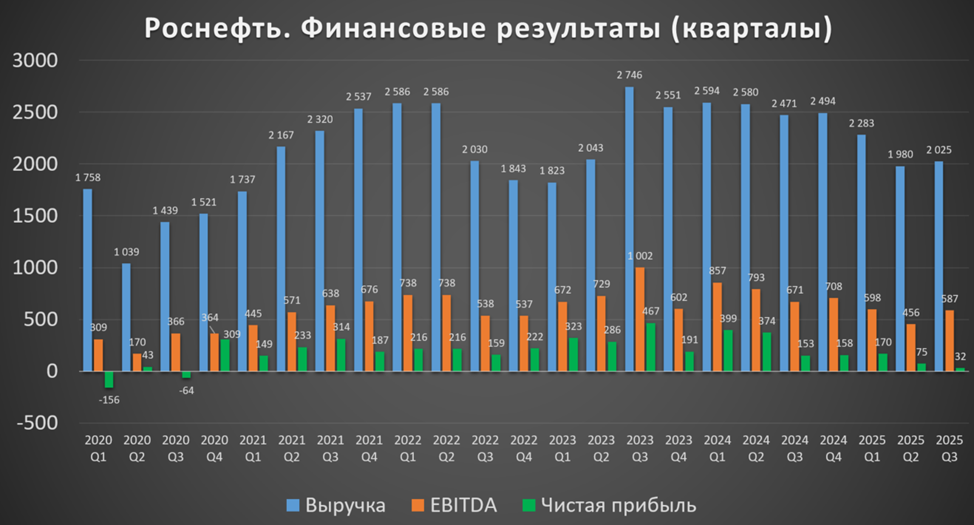 А за 3Q 2025 Роснефть заработала 1,5₽ дивидендов. Т.е. менее 0,5% доходности.