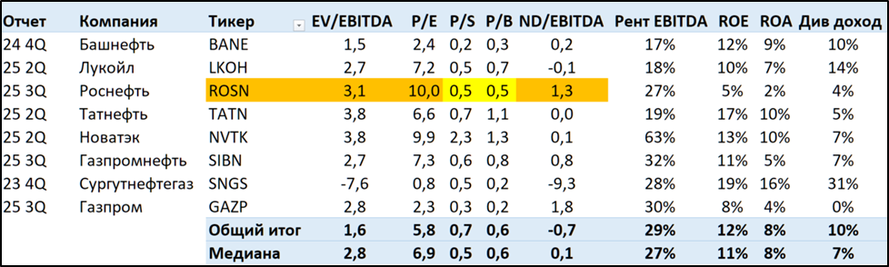 В сравнении с другими нефтегазовыми компаниями, Роснефть оценена в среднем немного дороже.