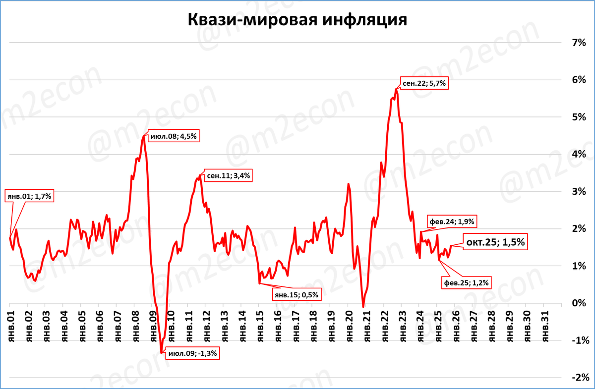Чтобы посчитать реальную (не номинальную) динамику, мы также считаем мировую инфляцию по своей методике. В октябре, по нашим расчётам, она составила 1,5% годовых.