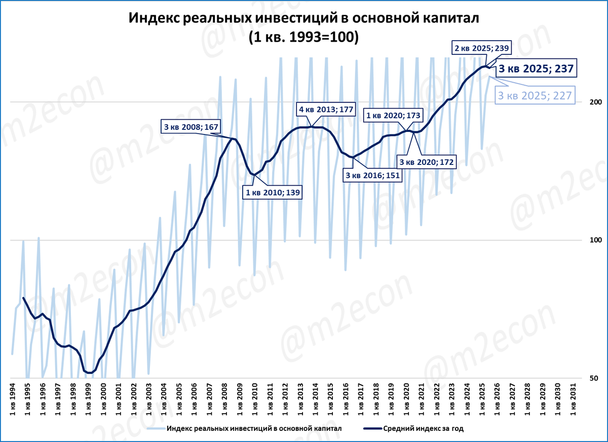 Несмотря на падение в 3 квартале, по итогам 2025 года инвестиции всё-таки установят новый исторический рекорд.