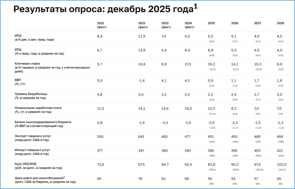 Таблицу можно использовать, если требуется прогноз экспертов до 2028 года по широкому кругу показателей, включая курс рубля.