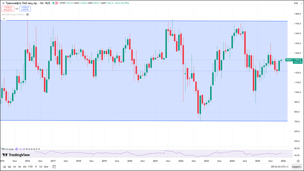 На Московской бирже торгуются привилегированные акции Транснефти. На данный момент котировки находятся на средних за последние 10 лет уровнях. Динамика с начала года +11%, не считая выплаченных дивидендов.