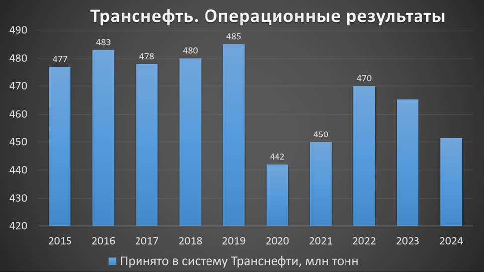 С начала специальной военной операции, Транснефть не публикует подробных данных о своих операционных результатах. Но из пресс-релиза по итогам 2024 года, известно, что несмотря на все западные санкции и ограничения ОПЕК+, они остаются относительно стабильными. В 2024 году снижение объемов транспортировки нефти составило 3%. А нефтепродуктов 2%. В 2025 году ожидается, что прокачка будет на этих же уровнях.
