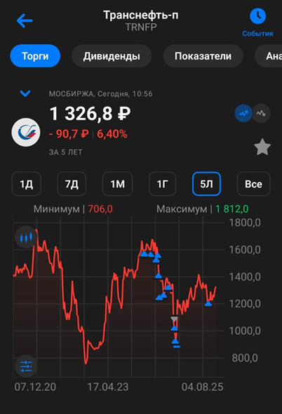 На данный момент доля Транснефти в моём портфеле акций около 6%. Текущий результат в +5%, не считая дивидендов