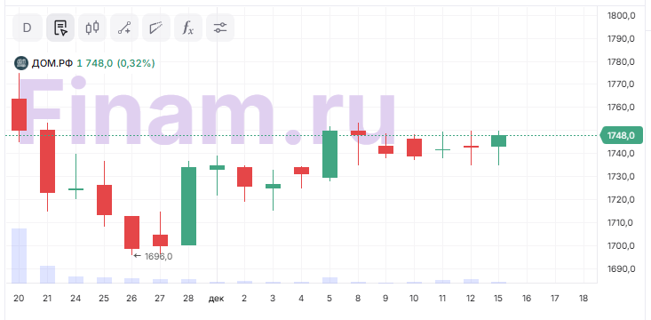 «Дом.РФ, в отличие от Сбера, имеет больший уклон в сектор недвижимости. Это значит, что когда там начнется восстановление после снижения ключевой ставки, динамика может быть поинтереснее. Главный вопрос - что будет с ликвидностью акций в стакане, потому что значительный объем размещения забрали институциональные инвесторы», - отмечал в ноябре Георгий Аведиков, создатель и автор сообщества «ИнвестократЪ».