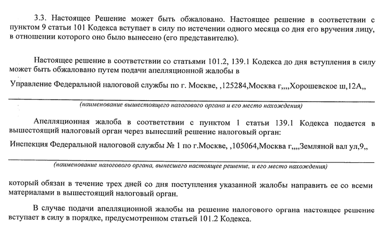 В этом решении указан вышестоящий налоговый орган и инспекция, которая оформила документ. Инспекция передает жалобу в УФНС в течение трех рабочих дней