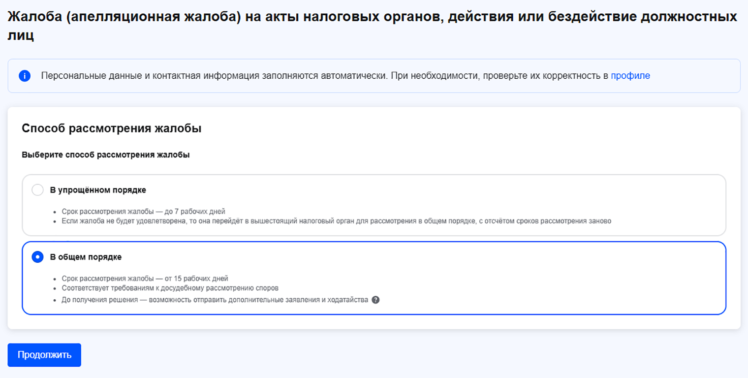 Есть упрощенный порядок подачи жалоб в электронном виде для менее сложных ситуаций — например, по поводу требований об уплате задолженности. Такие обращения рассматривает та инспекция, на которую жалуются. Если она не хочет удовлетворять требования, то обязана передать заявление выше.