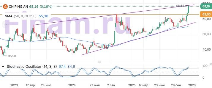 Мы положительно оцениваем долгосрочные перспективы Ping An Insurance. Продолжающееся повышение численности среднего класса в КНР на фоне сохраняющихся неплохих темпов роста экономики, постепенное старение населения и рост расходов на здравоохранение будут способствовать дальнейшему увеличению спроса на страховые продукты и услуги в стране. И Ping An Insurance, являясь одним из ведущих китайских страховщиков, как мы ожидаем, будет выигрывать от развития указанных тенденций. В то же время акции Ping An Insurance выросли почти на 30% с начала 2025 года и, на наш взгляд, уже не обладают каким-то существенным потенциалом укрепления.