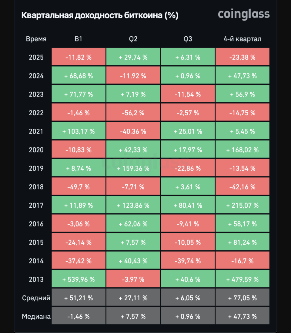 Биткоин потерял свыше 22% в четвертом квартале текущего года, что может стать худшим показателем за последние семь лет, сообщает аналитическая платформа CoinGlass.