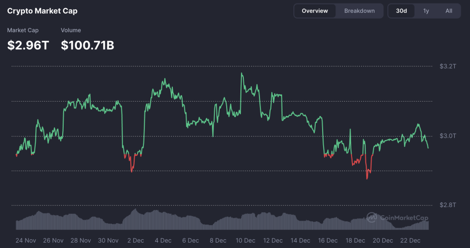Эксперты отмечают, что рынок криптовалют не увидел традиционного рождественского ралли, а его общая капитализация опустилась ниже $3 трлн, что говорит о неготовности основной массы трейдеров брать на себя инвестиционные риски, а также об усталости рынка.