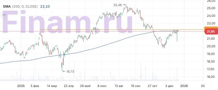 С октября акции компаний потребительского сектора в Китае начали демонстрировать разнонаправленную динамику относительно индекса Hang Seng, что во многом связано с коррекцией в ряде бумаг автомобильных производителей. Падение котировок в автосекторе отражает основную проблему всего потребительского рынка — структурное перепроизводство на фоне снижающегося внутреннего спроса. Однако текущая коррекция открывает привлекательные точки входа в диверсифицированные инструменты, которые ориентированы на долгосрочный потенциал восстановления и роста китайской экономики. В нашей выборке таким инструментом выступает ETF CHIQ, который позволяет получить экспозицию на широкий круг лидеров китайского потребительского сектора, включая лидеров e-commerce, (PDD, Alibaba, JD.com) и автопрома (BYD, Geely, XPeng). Целевая цена по бумаге составляет $27,3, что предполагает потенциал роста в 26%.