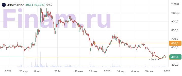 «Инарктика» ― крупнейший производитель лосося и форели в России, который сейчас торгуется на многолетних минимумах из-за временного сокращения производства на фоне реализованных биологических рисков. Бизнес компании изначально высокомаржинальный, а просадка по финансовым результатам объясняется именно резким снижением объемов выпуска при сохранении фиксированных затрат, а не ухудшением стоимости капитала или долговой нагрузкой. На горизонте 2026-2027 гг. ожидается восстановление производства, что может вернуть прибыльность к прежним уровням. Дополнительным драйвером для компании может стать ослабление рубля — на этом фоне «Инарктика» получит ценовое преимущество относительно импорта и сможет эффективнее наращивать долю внутреннего рынка. Наша целевая цена по бумаге ― 620 руб., потенциал ― 26%.