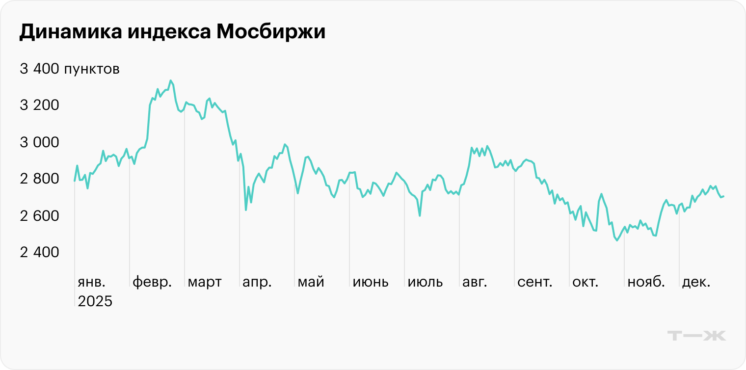 Российский фондовый рынок продолжает падать второй год подряд. С начала 2025 индекс Мосбиржи