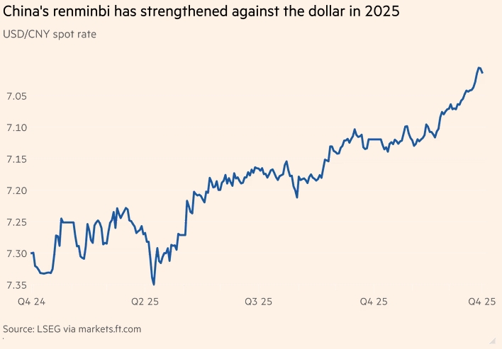 В понедельник, 18 декабря, Народный банк Китая установил курс юаня на уровне 7,03 за доллар, что стало самым высоким показателем с сентября 2024 года. В течение года китайская валюта укрепилась на 4 % по отношению к доллару, однако ослабла по отношению к евро и другим основным валютам.