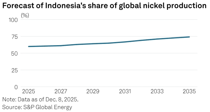 Хотя Лахадалия не уточнил целевые показатели сокращения добычи, по состоянию на 8 декабря ожидалось, что Индонезия продолжит наращивать свою долю на рынке с 59,9% в 2025 году до 74,1% к 2035 году, к тому времени, согласно прогнозам аналитиков S&P Global, цена никеля достигнет 17 600 долларов за тонну.