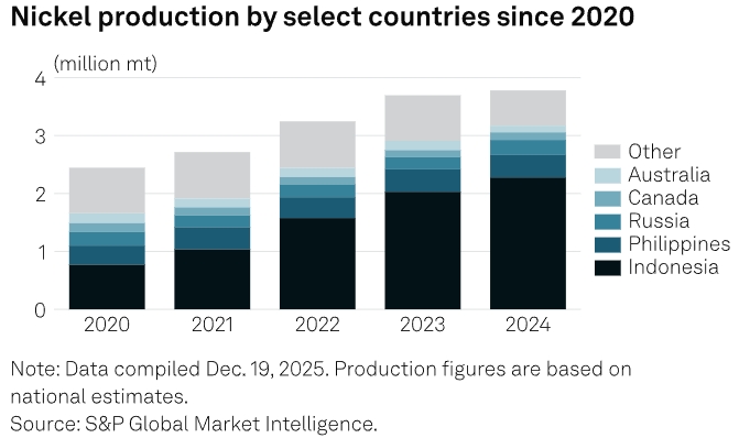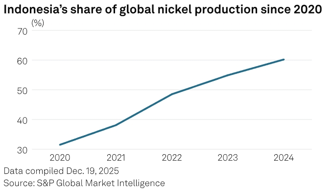 Согласно данным S&P Global, Индонезия увеличила свою долю рынка с 31,5% в 2020 году (когда был введен запрет на экспорт никеля, что стимулировало инвестиции в переработку), до 60,2% в 2024 году благодаря инвестициям, финансируемым Китаем, которые вынудили значительную часть мирового рынка прекратить поставки.