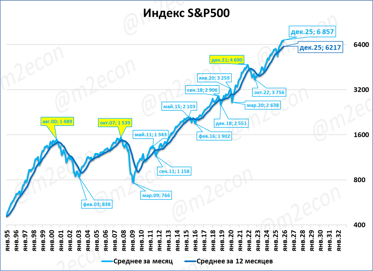 Американский индекс S&P 500 в декабре составил 6 857 пунктов (+15%). Это очередной исторический рекорд.