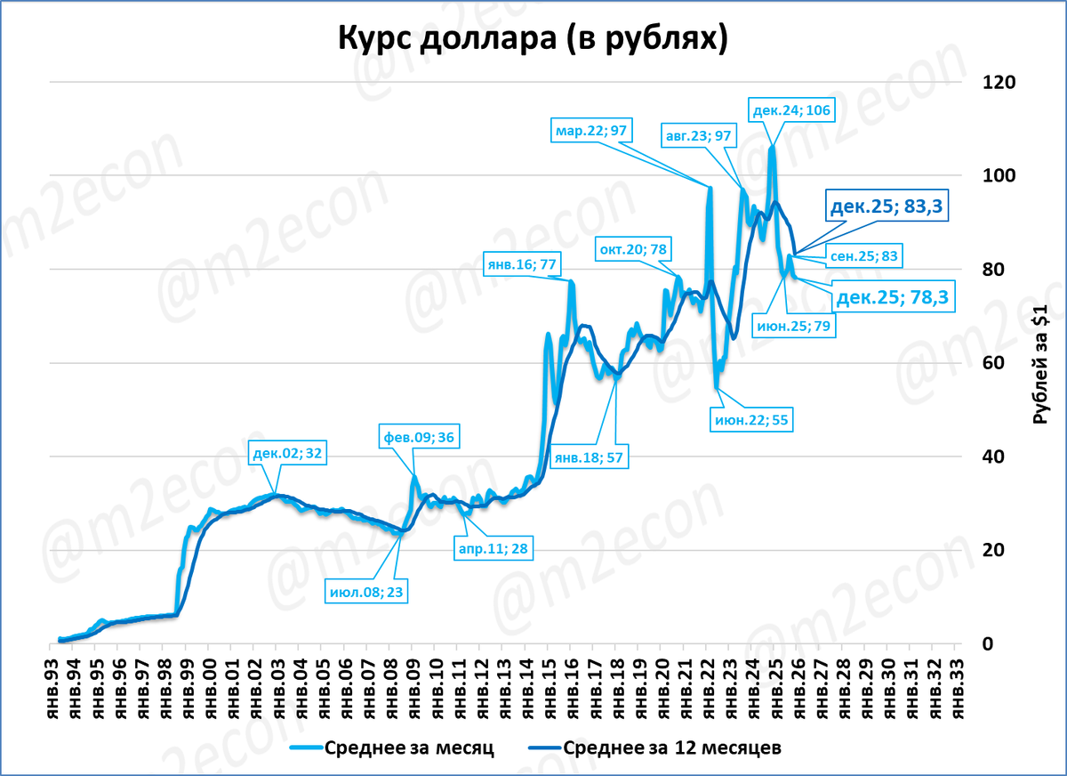 Курс рубля.В декабре курс usd/rub составил 78,3 рубля за доллар. Последние полгода курс находится в диапазоне 78-83 руб. за доллар.