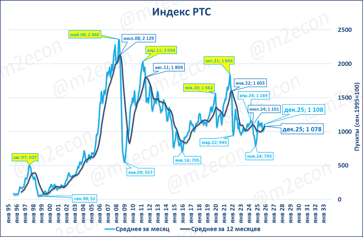 Индекс РТС: 1 108 пунктов, +32% годовых