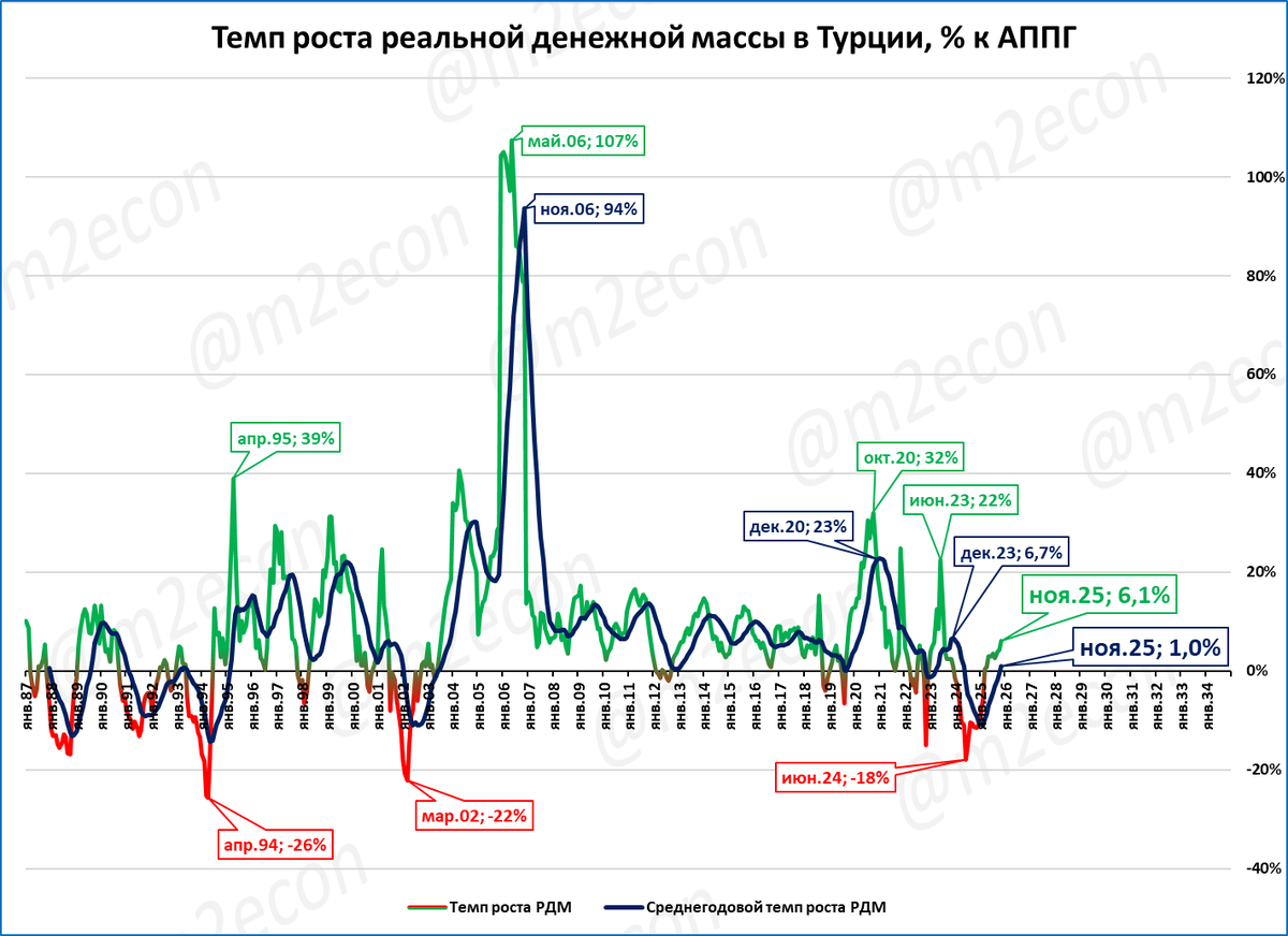 В ноябре рост РДМ Турции составил 6,1% к ноябрю 2024 года. ВВП в 3 квартале замедлился до 3,7% к 3 кварталу 2024 года.