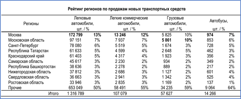 В грузовиках на столичный регион приходится 20% регистраций, в легковых автомобилях -- тоже 20%.