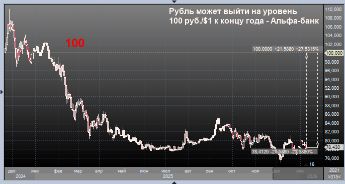 Рубль может выйти на уровень 100 руб./$1 к концу 2026 года, говорится в обзоре экспертов Альфа-банка.