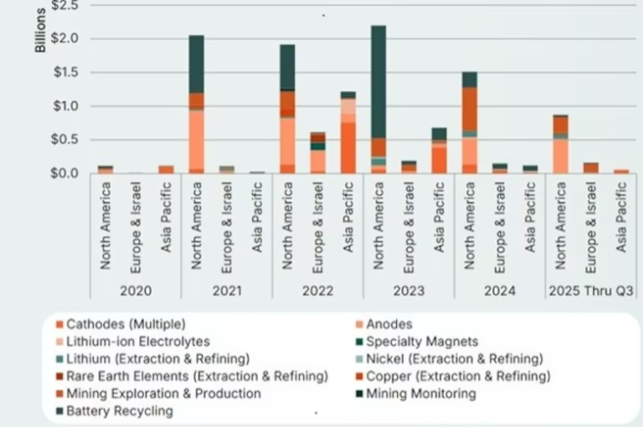 Источник: Cleantech Group. На диаграмме: венчурные и инвестиционные проекты роста в сфере инноваций в области критически важных минералов.