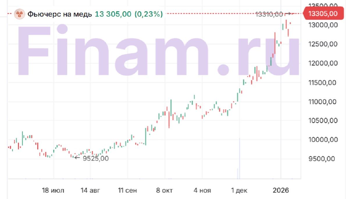 У аналитиков «БКС Мир Инвестиций» прогноз по меди на 2026 год - 11 000 долл/тонну в среднем за год, алюминий - 2 800 долл/тонну в среднем за год. Эти прогнозы, по словам Масликова, были сформированы в конце декабря 2025 года. Сегодня на торгах медь находится в районе 13,3 тыс. долларов за тонну, алюминий – около 3200 долларов за тонну.