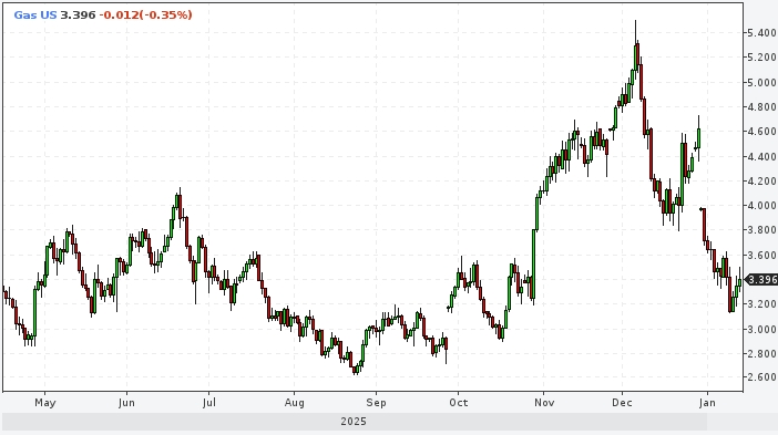 Управление энергетической информации в связи с ожиданиями более теплого января, который обычно является месяцем с самым высоким спросом на отопительное топливо, снизило прогноз средней цены на газ на 14% на 2026 год.