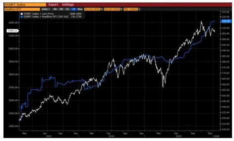 Смягчение ДКП. В 2025 году «ключ» была снижен с 4,5% в начале года до 3,75% в декабре. При этом смягчение сопровождается ростом ВВП ― экономика держится лучше ожиданий, и корпоративные прибыли также находятся на подъеме, особенно в техах.