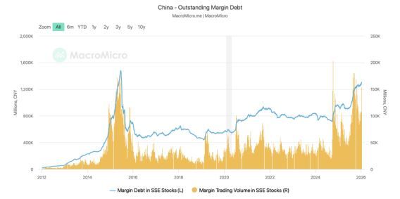 С США были достигнуты торговые договоренности, хотя они носят временный характер, и до очередного обострения рынок акций должен чувствовать себя неплохо в таких макроусловиях. Но проблемой может стать внутриполитическая ситуация в Иране и риск перекрытия Ормузского пролива, через который в Китай поступает нефть (примерно 17% от всего импорта Китая). Кроме того, Китаю придется платить более высокую цену на нефть после захвата американцами нефтяной отрасли Венесуэлы. Мировые цены на нефть немного подскочили после этого события. Риском также остается высокий уровень маржинальных позиций в акциях, что делает рынок уязвимым перед плохими новостями.
