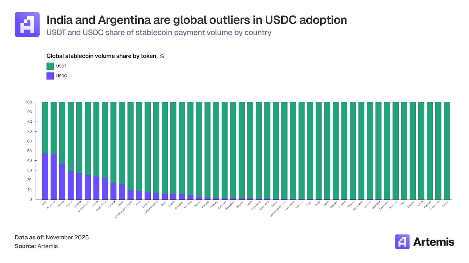 Аргентину. Здесь «стабильные монеты» служат цифровым аналогом доллара, защищая сбережения от обесценивания. Местные жители активно используют их для повседневных расчетов. Примечательно, что аргентинцы отдают предпочтение USDC, считая его более надежным и прозрачным активом по сравнению с USDT.