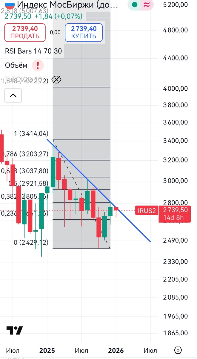Соответственно как только индекс ММВБ его пробьёт, тогда можно будет смело ждать ускорения роста. А пока мы находимся снизу от уровня сопротивления, то тренд все еще нисходящий.