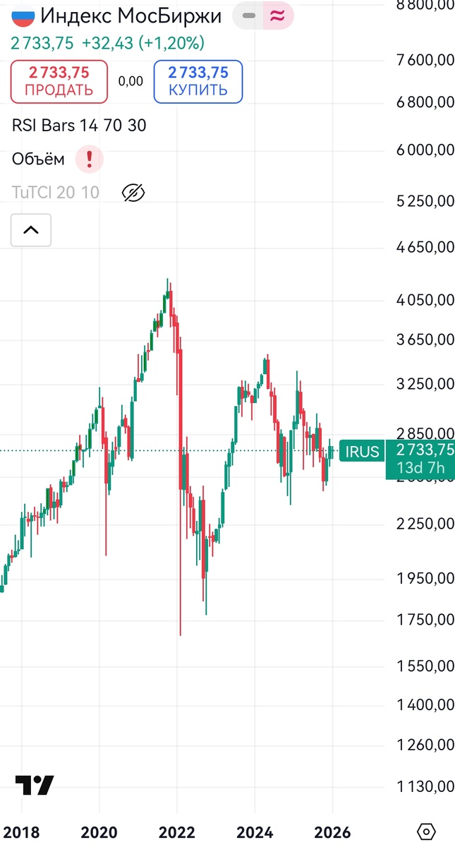 Ну и не стоит забывать про то, что базово индекс ММВБ торгуется очень низко. Это уровни 2019 года. Соответственно если не учитывать дивиденды, то индекс стоит на месте уже 7 лет.