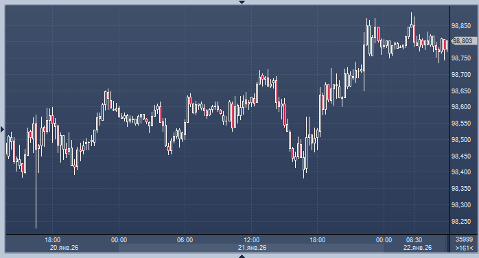Доллар США сохранил восходящий тренд по отношению к основным валютам, начатый накануне, после того как президент Дональд Трамп отменил угрозу введения тарифов на некоторые европейские страны НАТО, объявив о достижении рамочного соглашения по контролю над Гренландией на саммите в Давосе.