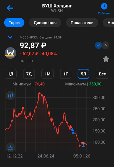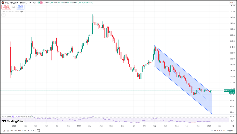С максимумов 2024 года акции обвалились более, чем в 3,5 раза. И только за 2025 год снижение составило около 48%. Также текущие котировки в 2 раза ниже цены IPO, которое было в конце 2023 года. На данный момент акции торгуются вблизи исторических минимумов.