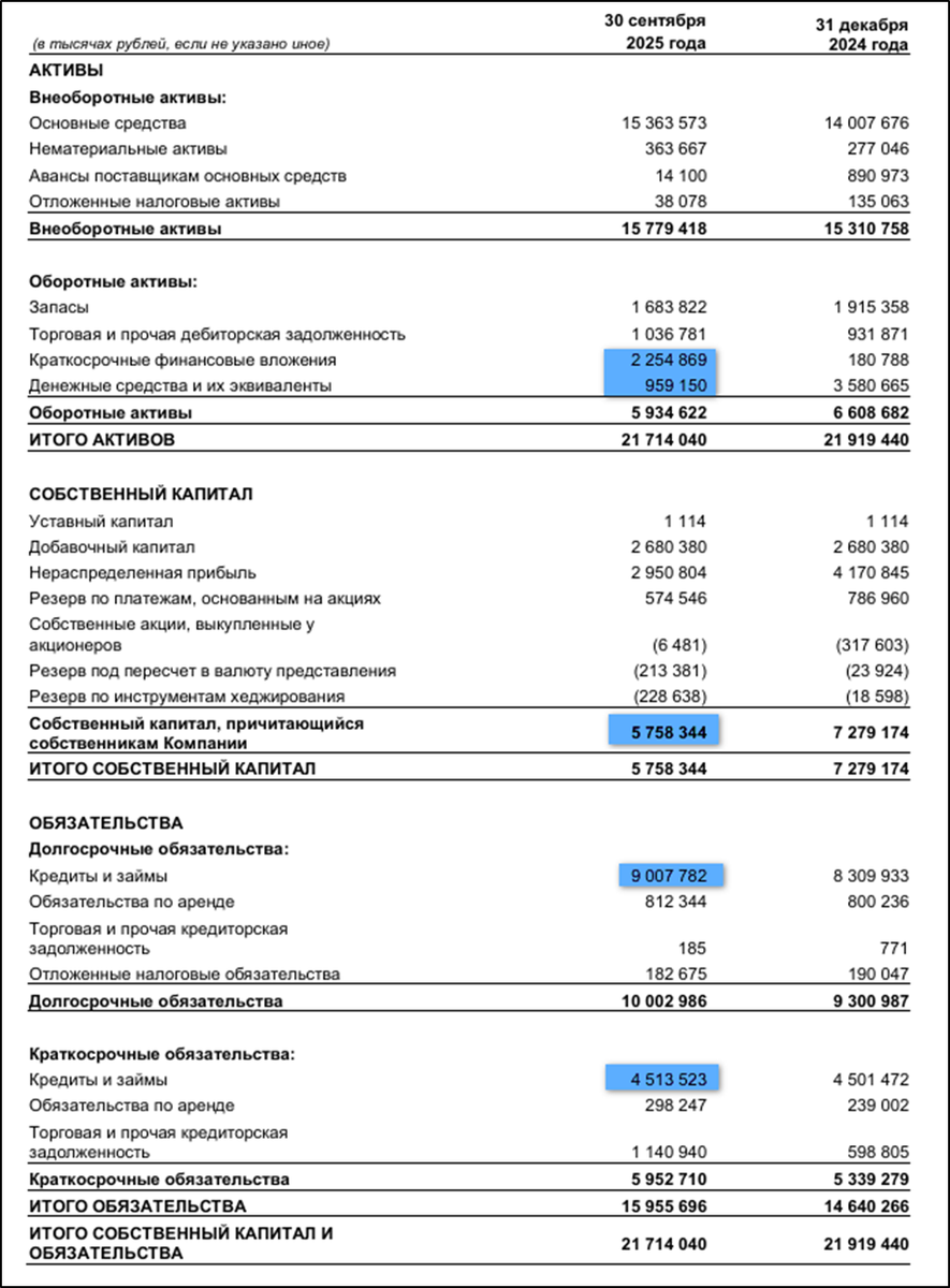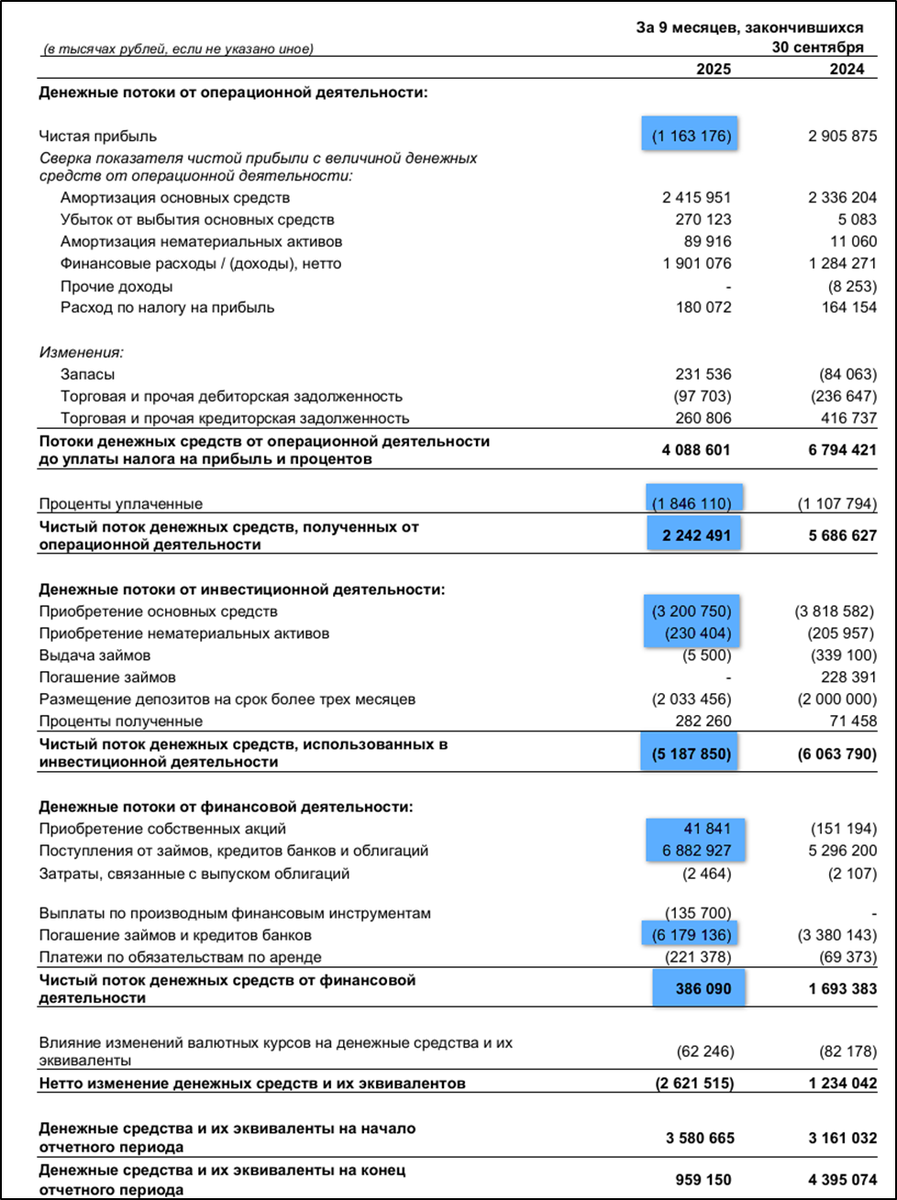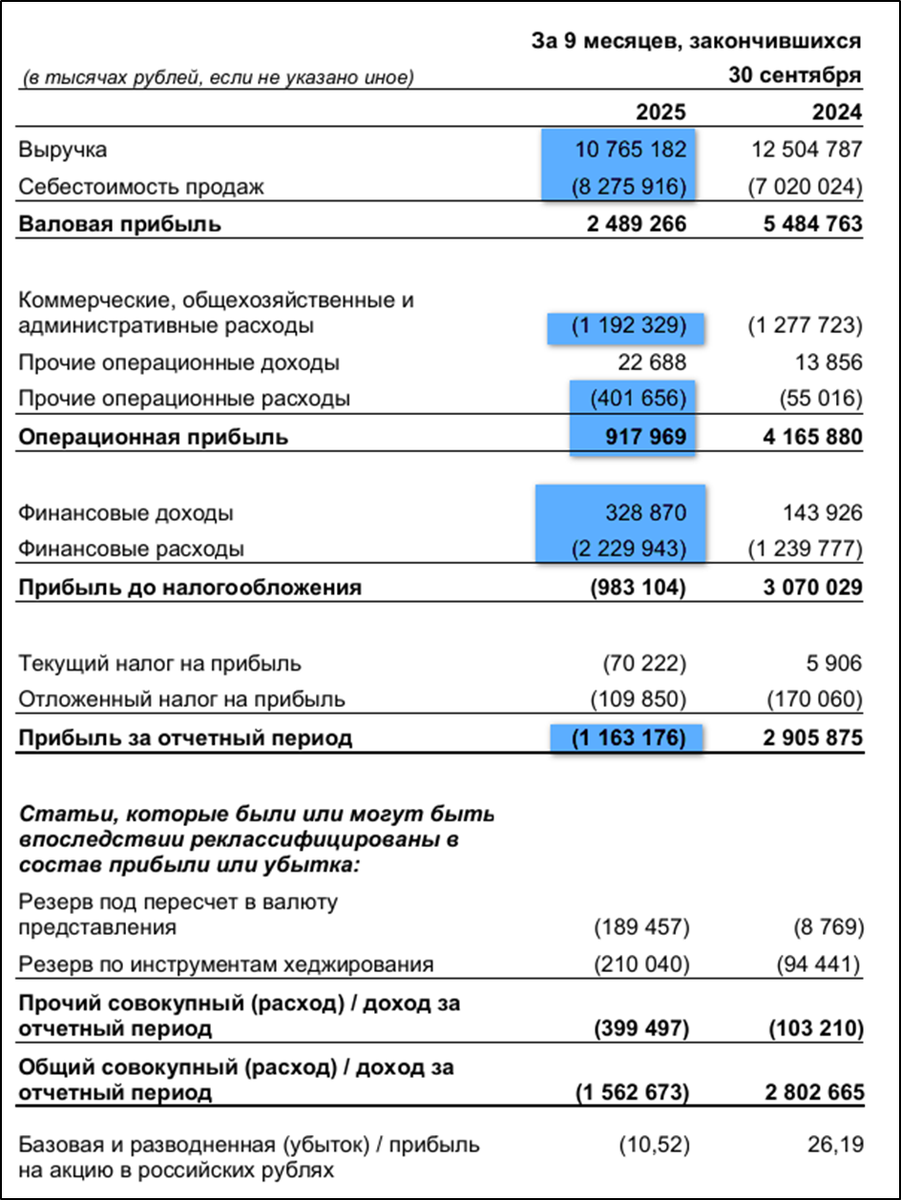 Рассмотрим результаты последнего сокращенного отчета по МСФО за 9М 2025: