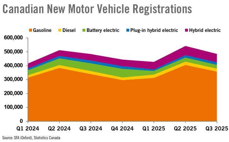У рынков PGM свои проблемы. Канада снизила пошлины на китайские электромобили (EV) до 6,1% со 100%, установленных в 2024 году. Первоначально Канада разрешит импорт до 49 тыс. китайских EV в этом году. Квота будет постепенно увеличиваться, достигнув примерно 70 тыс. EV через пять лет, к тому времени правительство ожидает, что половина китайских автомобилей будет стоить менее $ 35 тыс. Продажи EV в Канаде в 2025 году составили чуть более 1,4 млн единиц, а прекращение действия федеральной программы субсидирования iZEV привело к резкому падению продаж EV и подключаемых гибридов (PHEV) в прошлом году.