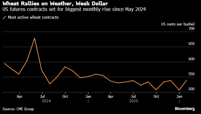 Фьючерсы на американскую пшеницу демонстрируют почти самый значительный месячный рост за последние два года благодаря ослаблению доллара, что сделало экспорт этой культуры более привлекательным за рубежом.